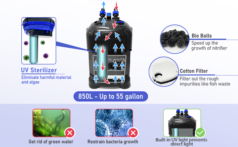 Amazon Com Aquatop Forza Premium Canister Filter 13w Uv 550 Gph For 125 175 Gallon Tanks Uv For Crystal Clear Water Great For Salt Freshwater Tanks Including Aquarium Filtration Media Pet Supplies